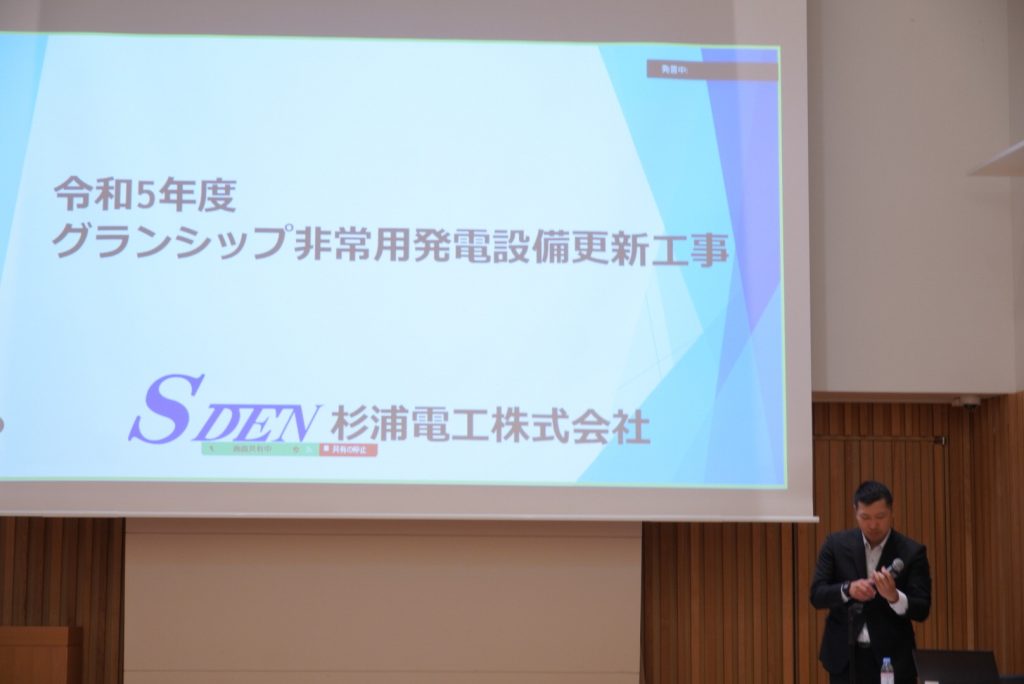 当日は表彰状を授与して頂き、電気設備工事の分野より工事事例の説明を仰せつかりました。