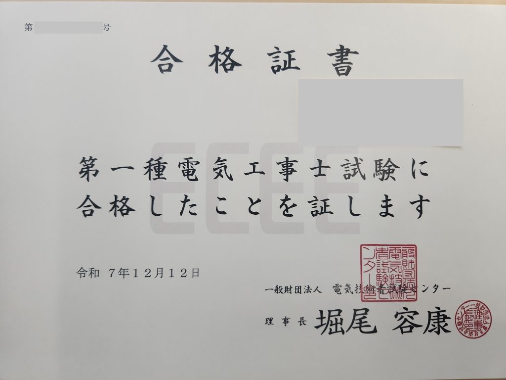 昨年入社された電気工事士見習いの男性職員👷♂️のM氏が第一種電気工事士の技能試験を11月22日(土)に受験し、試験結果が先月の12月12日(金)に発表されました。結果通知書については12月24日(水)より発送されました📬